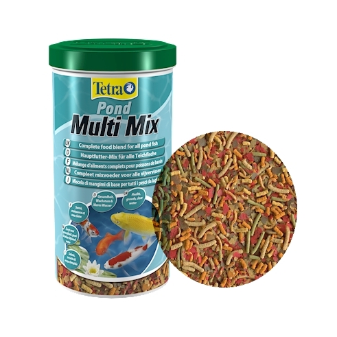 Пищевая смесь из нескольких сортов корма в виде палочек, хлопьев, таблеток и гаммаруса обеспечит натуральное питание всех прудовых рыб.