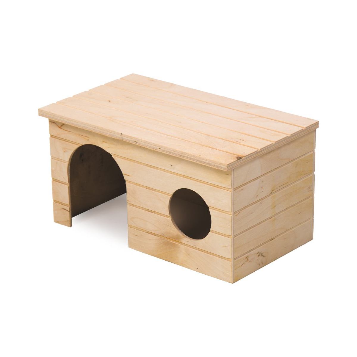 Удобный просторный домик изготовлено из крепкой фанеры,в производстве не используются металлические элементы, которые могут травмировать животное. Укрытие защищает от сквозняков и холодов, дает ощущение уюта и защищенности. Дверца широкие, окно обеспечивает животному обзор и улучшает доступ воздуха в домик.