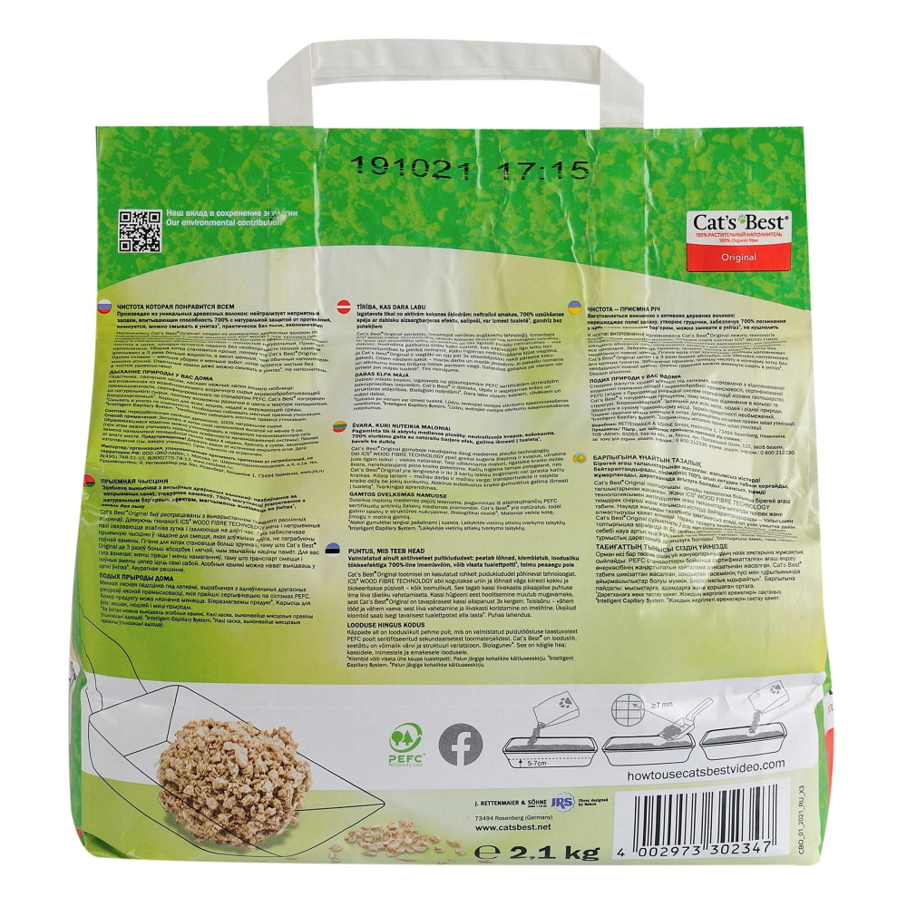 Для Cat’s Best дерева не вирубуються, продукти цього бренду виготовляються з екологічно чистої вторинної деревної сировини лісопромислового виробництва, сертифікованої PEFC.