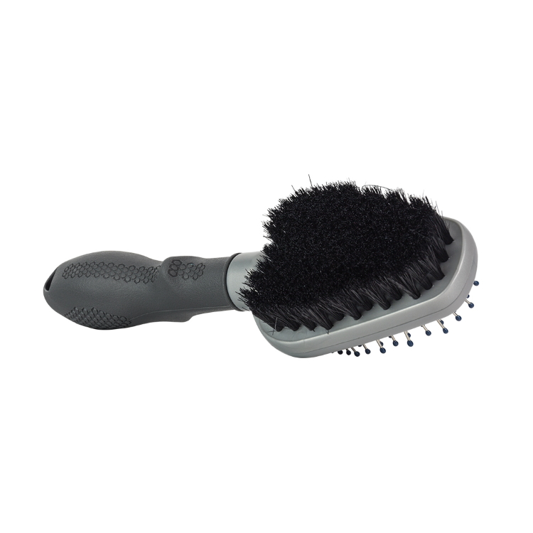 Двойная щетка FURminator имеет две разные стороны, которые служат разным целям. С одной стороны, вы найдете прочные жесткие щетинки, которые распутывают шерсть и помогают удалить любую грязь, а также помогают прочесывать спутывания. Другая сторона сделана из мягкой щетины кабана, которая помогает сохранить естественную гладкость и блеск шерсти. Эта щетка для кошек и собак имеет эргономичную противоскользящую рукоятку, которая делает ее удобной и удобной в использовании.