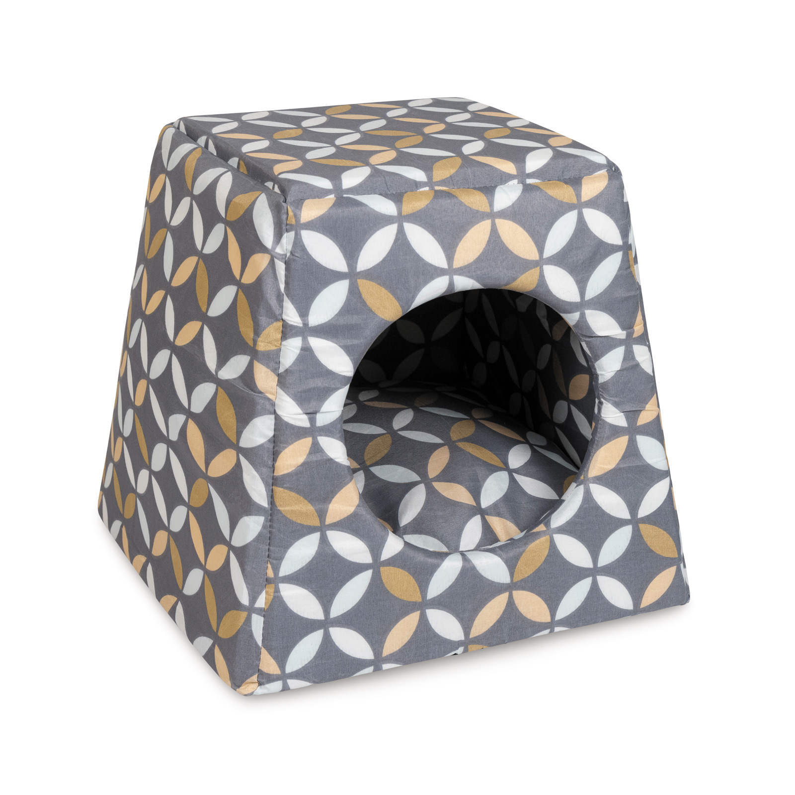 Практичный дом из мягкой хлопковой ткани придется по вкусу не только котам, но и небольшим собакам. Лежак-трасформер можно использовать в 2 положениях: как домик с круглым входом и мягкой подушкой внутри; как лежак-диванчик– достаточно надавить ладонью на «крышу» домика, предварительно вынув из него подушку, а затем уложить ее обратно в лежачок.