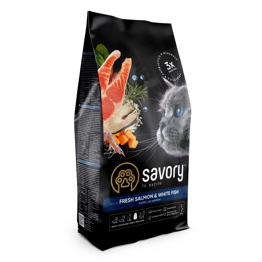 Каталог товаров : Сухий корм для котів > Сухой корм Savory Adult Cat Gourmand для длинношерстных котов с лососем и белой рыбой 2кг