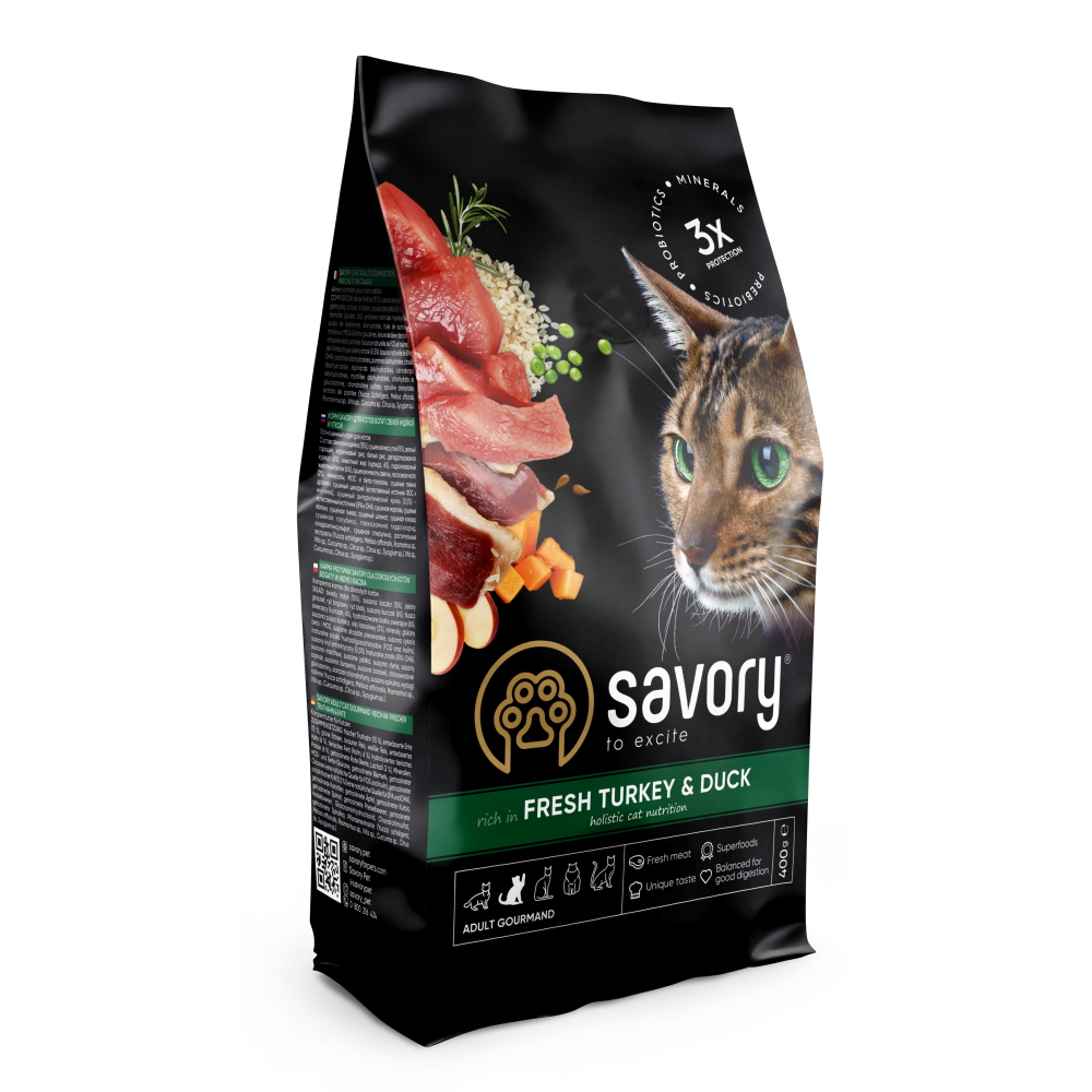 Каталог товаров : Сухий корм для котів > Сухой корм Savory Adult Cat Gourmand для котов с индейкой и уткой 400г