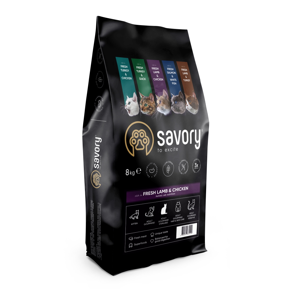 Каталог товаров : Сухий корм для котів > Сухой корм Savory Adult Cat Steril для кастрированных котов с ягненком и курицей 8кг