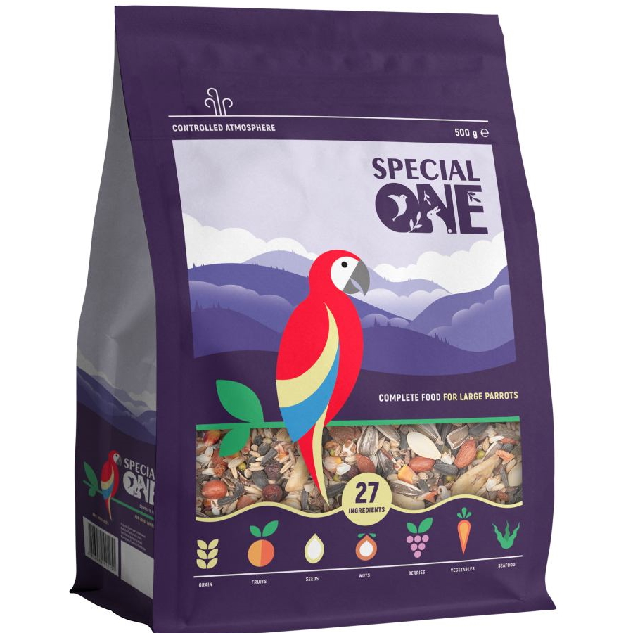 Каталог товаров : Корм для птахів > Повнораціонний корм для великих папуг Special One 500г