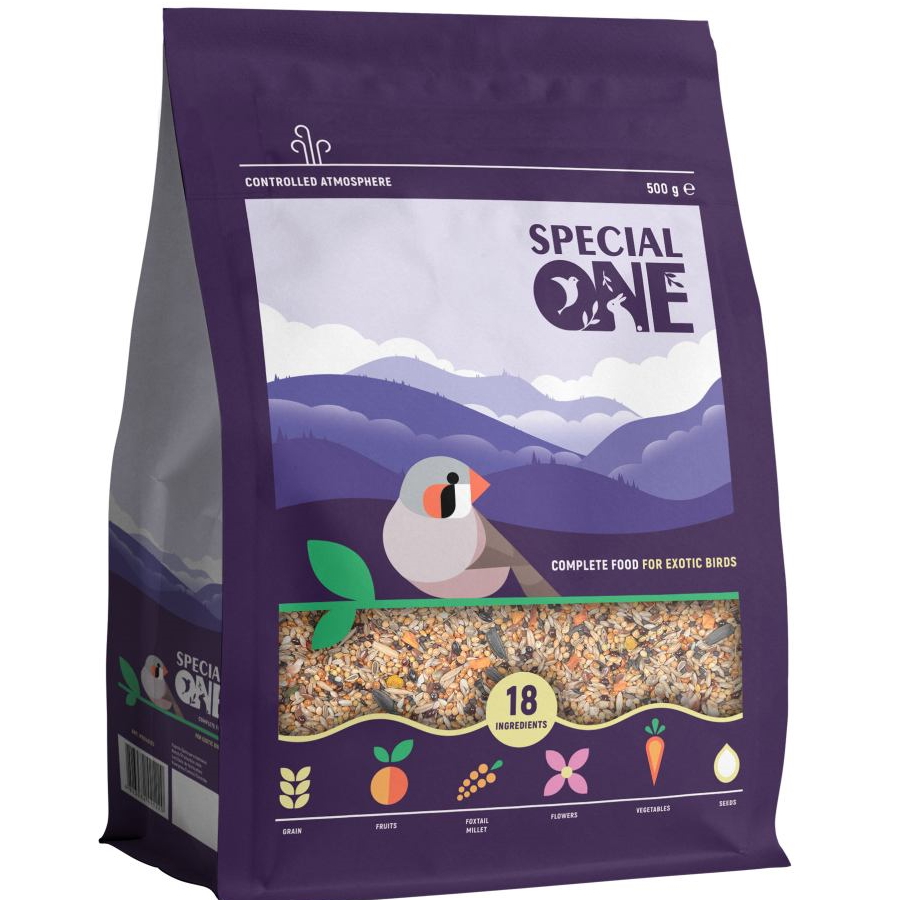 Каталог товаров : Корм для птахів > Повнораціонний корм для екзотичніх птахів Special One 500г