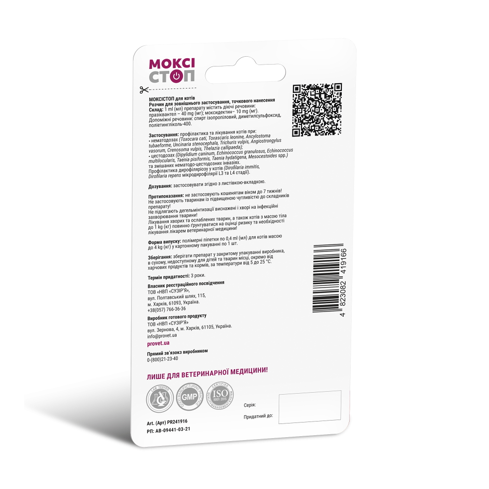 0,4 ml (мл) для котів масою до 4 kg (кг);