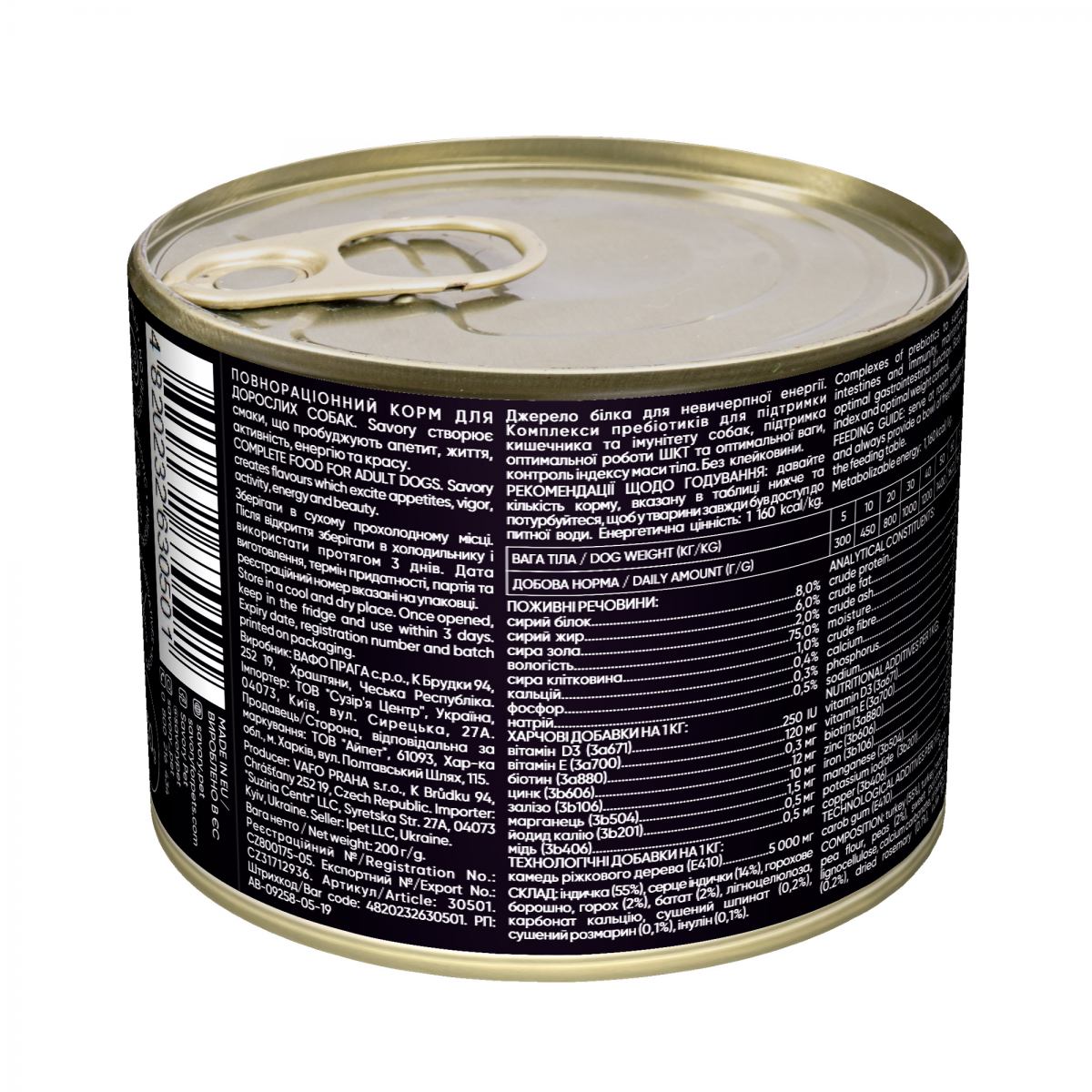 Каталог товаров : Консерви для собак > Консервы для собак Savory с индейкой 200г