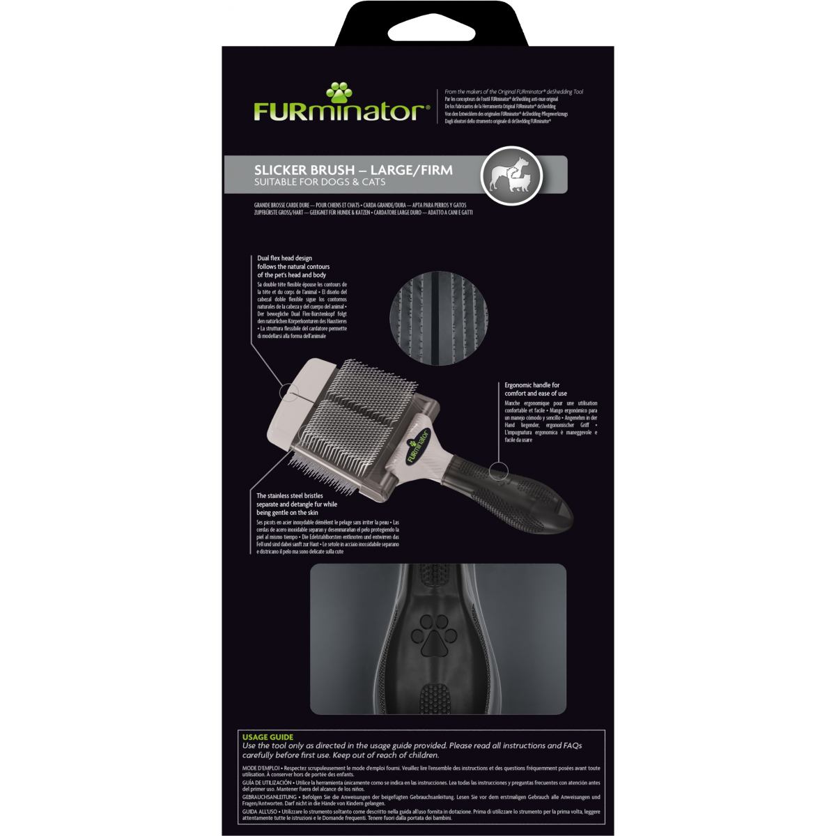 • Изогнутые щетинки удаляют колтуны и спутанную шерсть, не повреждая ее