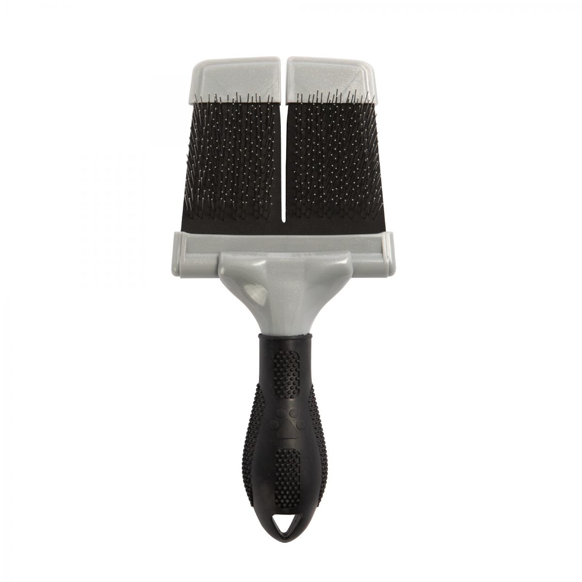 Щетка разработана специально для собак и кошек с вьющейся, средней и длинной шерстью. Двусторонняя щетка-пуходерка не травмирует кожу, несмотря на то, что щетина двух видов сделана из нержавеющей стали: изогнутые щетинки помогают удалить колтуны и спутанную шерсть, не повреждая ее, а прямые щетинки – сделать шерсть гладкой и блестящей. Двусторонняя конструкция с гибкой насадкой повторяет естественные контуры головы и тела питомца, что не только облегчает груминг, но также доставляет удовольствие вашему любимцу. Эргономичная ручка гарантирует удобное и безопасное использование.
