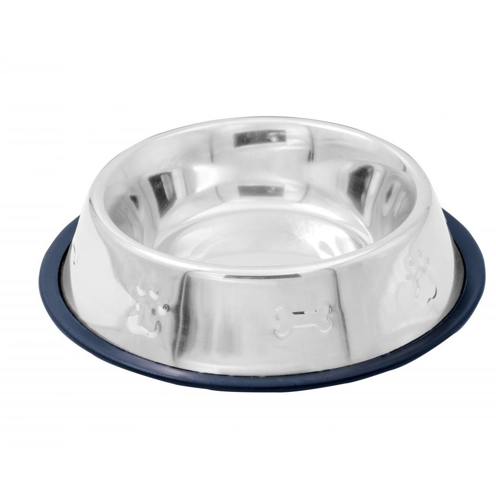 Каталог товаров : Миски, годівниці, поїлки для собак > Металлическая миска SWI с резиновым ободком и рисунком для собак 475мл