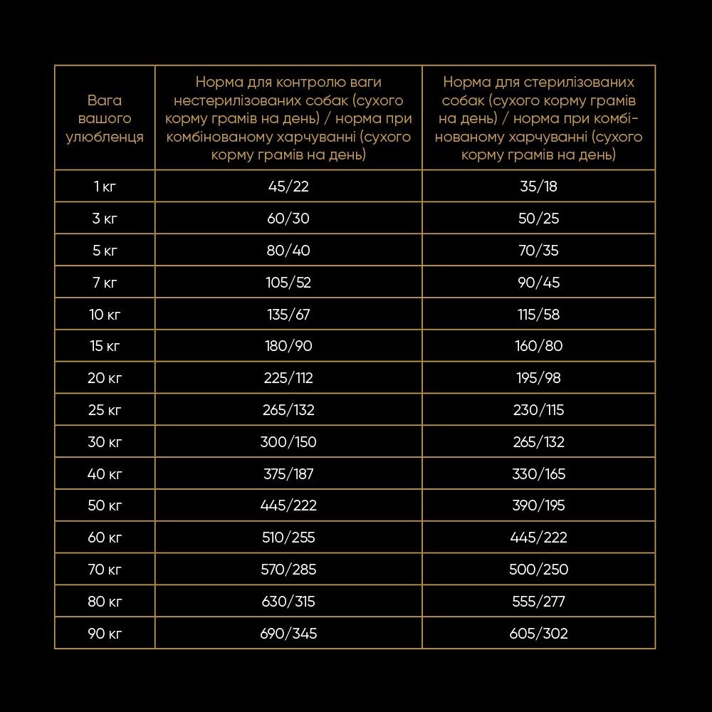 Для контролю ваги нестерилізованих собак Для стерилізованих собак