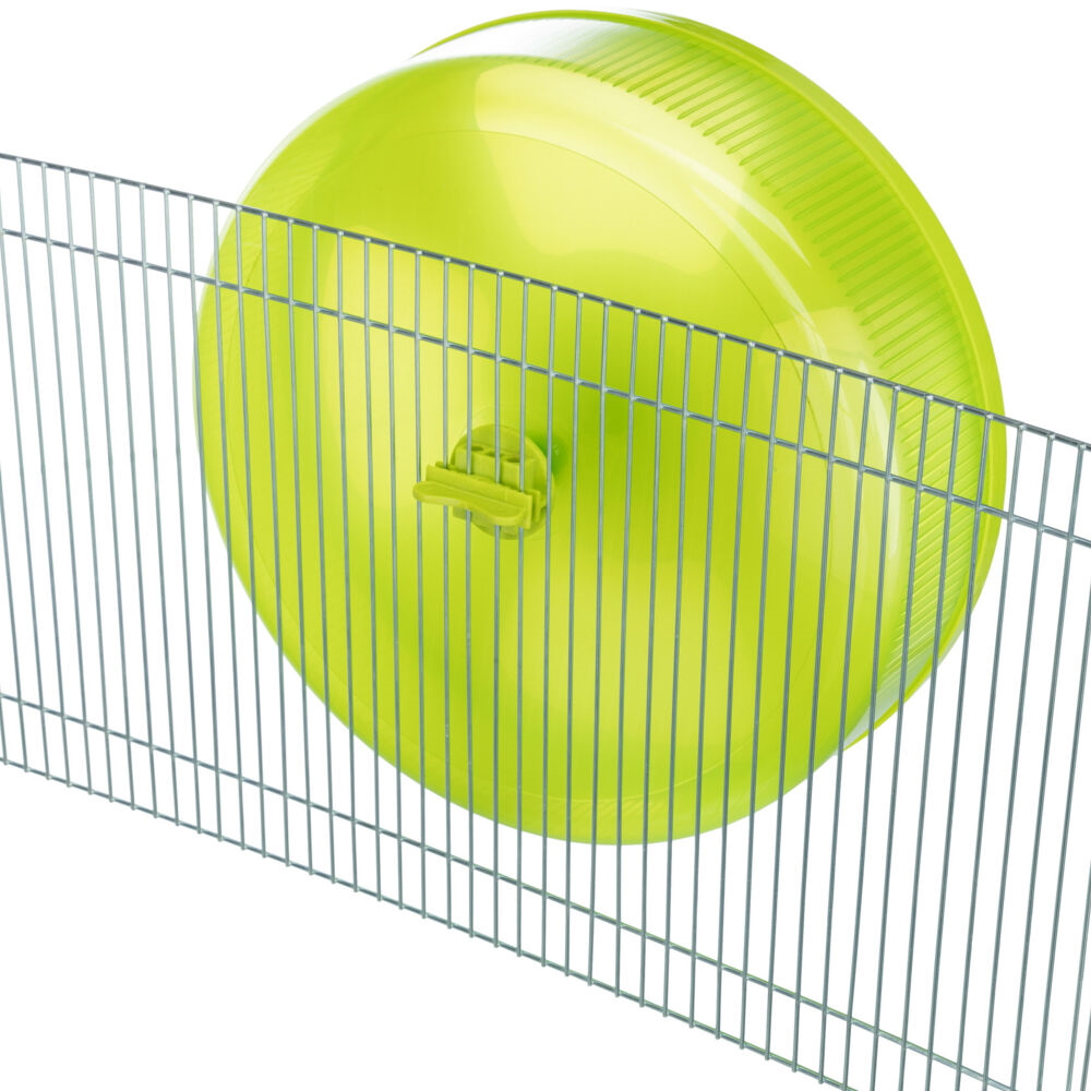 Це бігове колесо на підставці призначене для гризунів, таких як хом'яки, миші, щури та інші. Діаметр колеса дає змогу тварині вільно бігати всередині нього. Колесо виготовлено з міцного пластику, який не токсичний і не завдає шкоди здоров'ю тварини. Колесо легко монтується на підставку і може використовуватися як всередині клітки, так і поза нею. Колесо вирізняється високою якістю, міцністю та довговічністю, що забезпечує надійність і комфорт для вашого улюбленця.