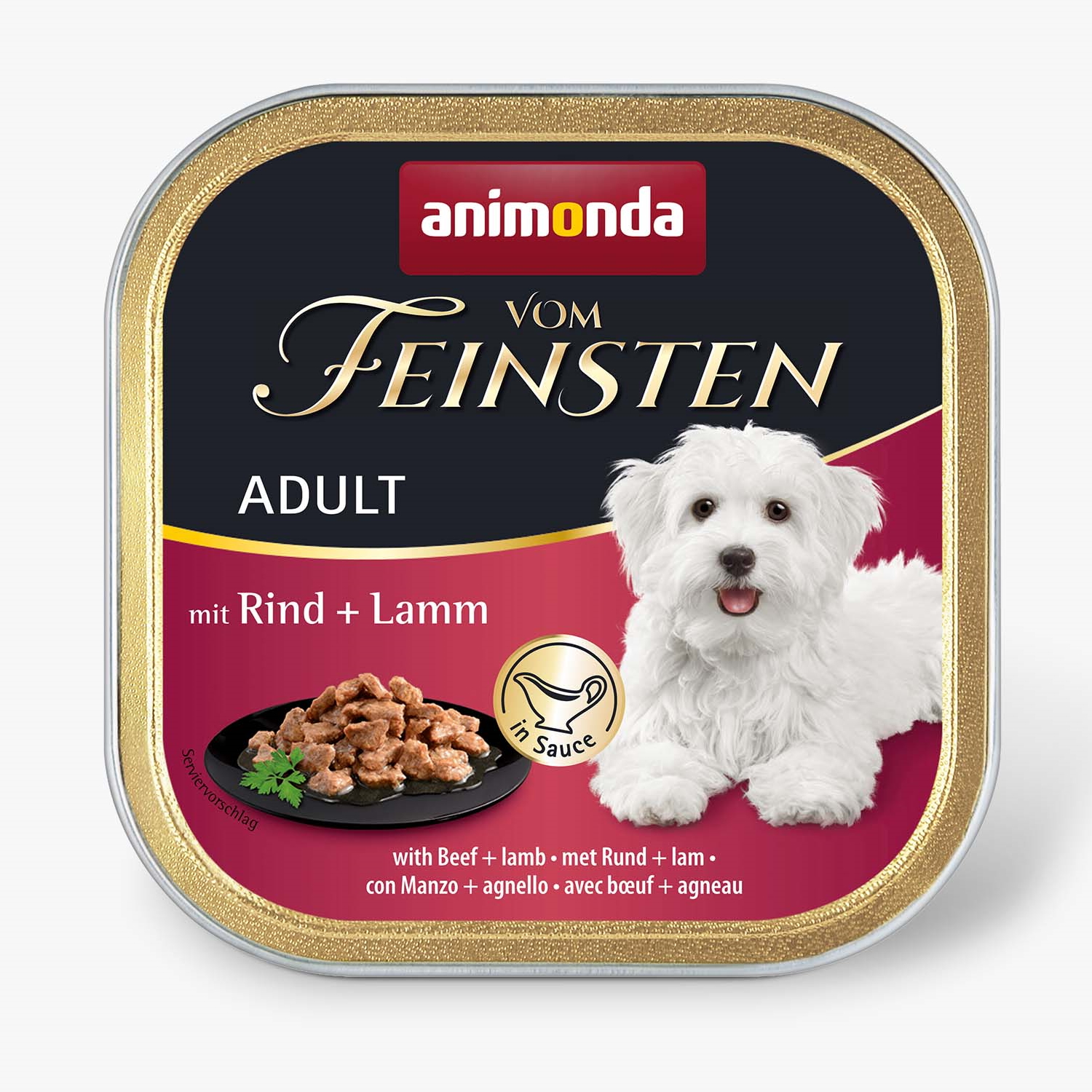 Vom Feinsten Adult with Beef + lamb – влажный корм с говядиной и ягнятиной для собак, любящих сюрпризы. Он завораживает любимцев нежными кусочками мяса, тающими во рту и аппетитным соусом, который собаки слизывают до последней капли.