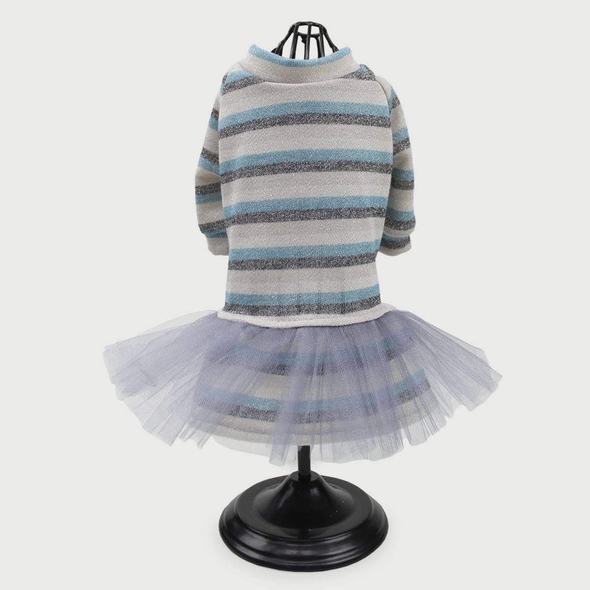 Каталог товаров : Весняно-осінні костюми, плаття та брюки для собак > Осіння сукня з люрексом для собак Dogs Bomba P-29 смугаста блакитна