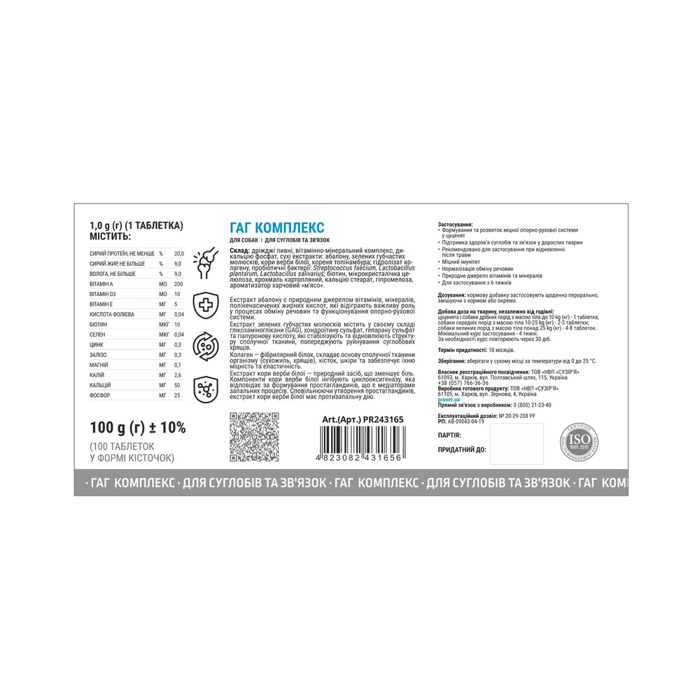 Каталог товаров : Вітамінні добавки та вітаміни для собак > Вітаміни для собак Provet Profiline ГАГ Комплекс для суглобів та зв`язок 100таб.