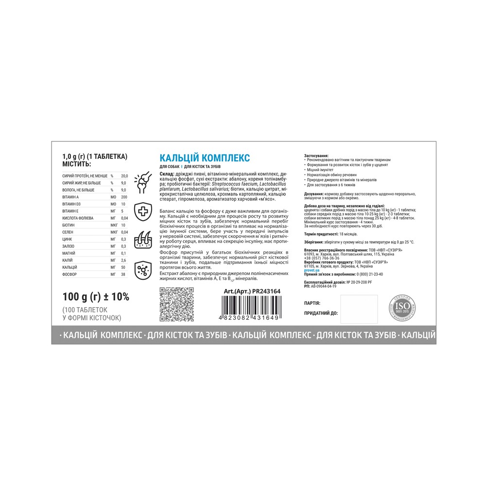 Каталог товаров : Вітамінні добавки та вітаміни для собак > Вітаміни для собак Provet Profiline Кальцій Комплекс для кісток та зубів 100таб.