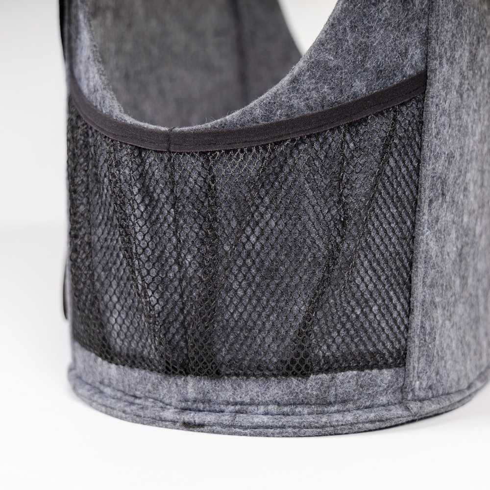 Нейтральні кольори, зручна форма, широкі ручки та якісний трендовий матеріал – це сумка-переноска Carri. Модель виготовлена з повсті, тверде дно сумки можна виймати і чистити. Віконечко дозволяє улюбленцю роздивлятися навкруги і дихати свіжим повітрям. Зручна кишеня із сітки дає можливість тримати під рукою ласощі, іграшку, гігієнічні серветки тощо.