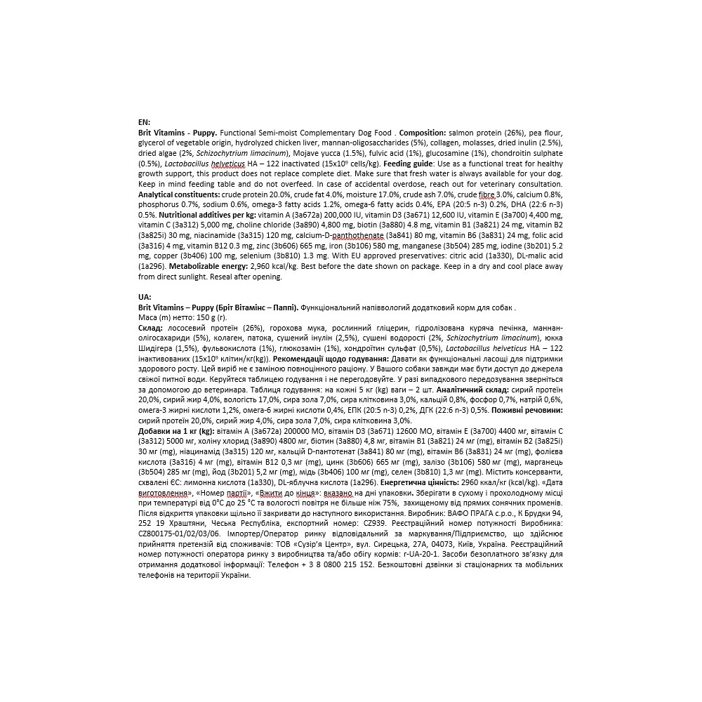 Описание: Функціональний напівм’який додатковий корм для цуценят.