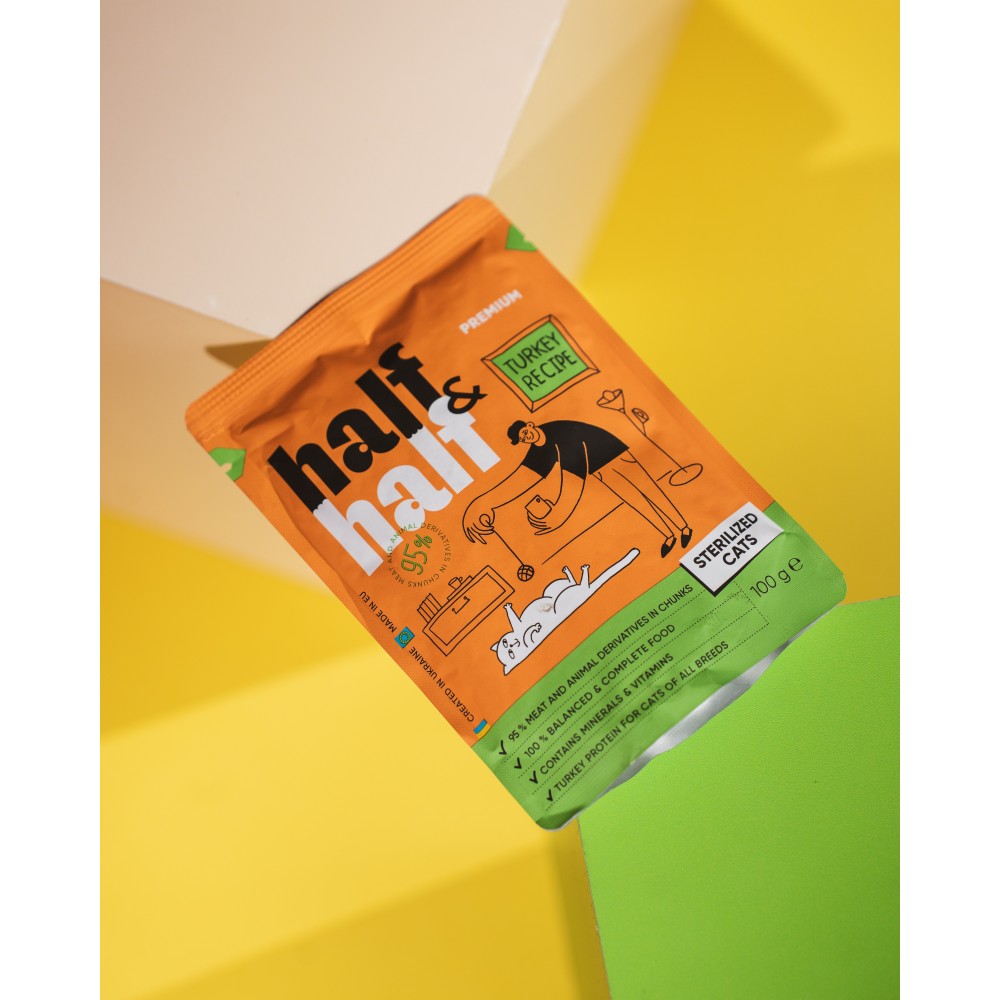 Вологий корм для стерилізованих котів Half Half шматочки з індичкою в желе 100г