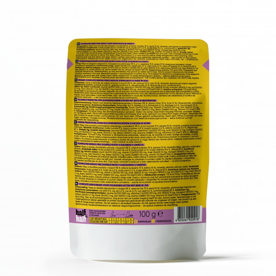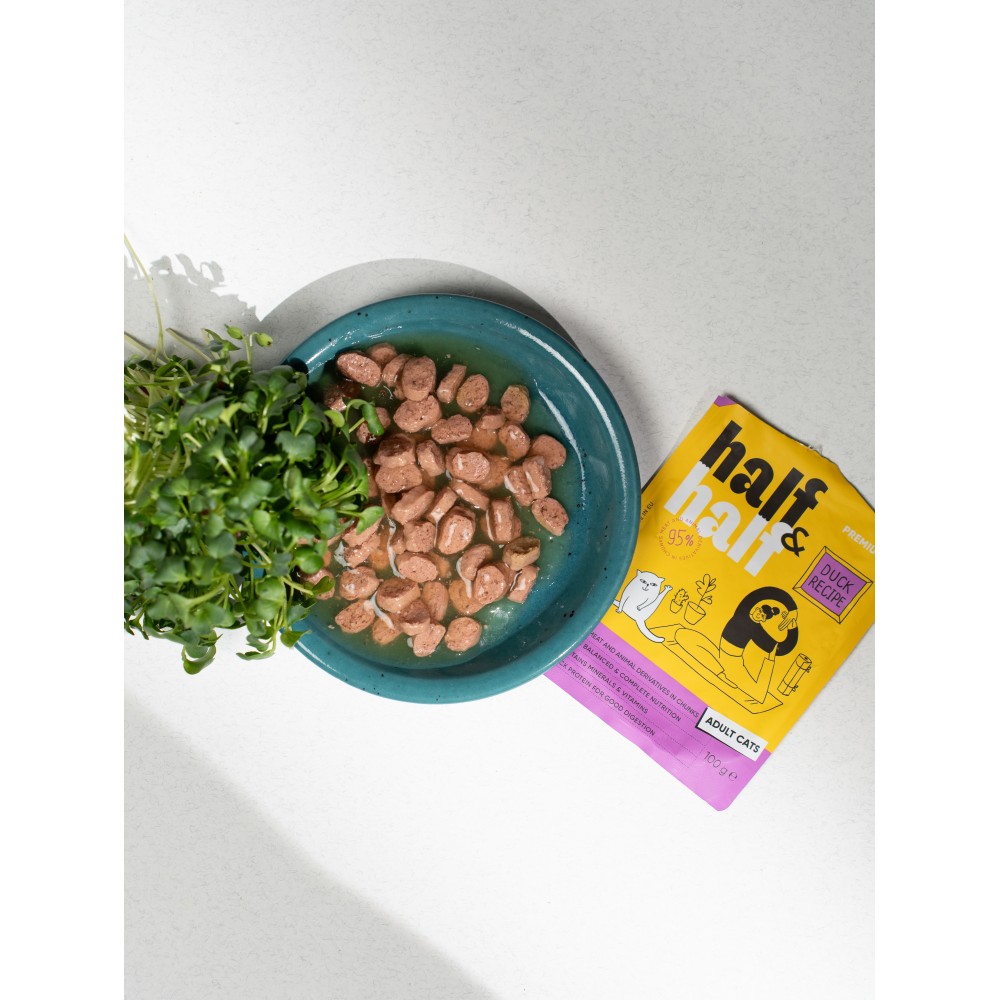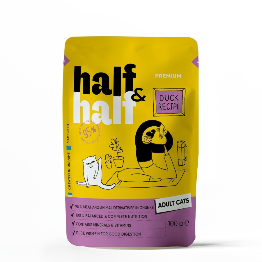 Оптимальний за калорійністю вологий раціон Half&Half стане чудовим доповненням до сухого корму для дорослих котів, підтримки їх активності та задовольнить енергетичні потреби.