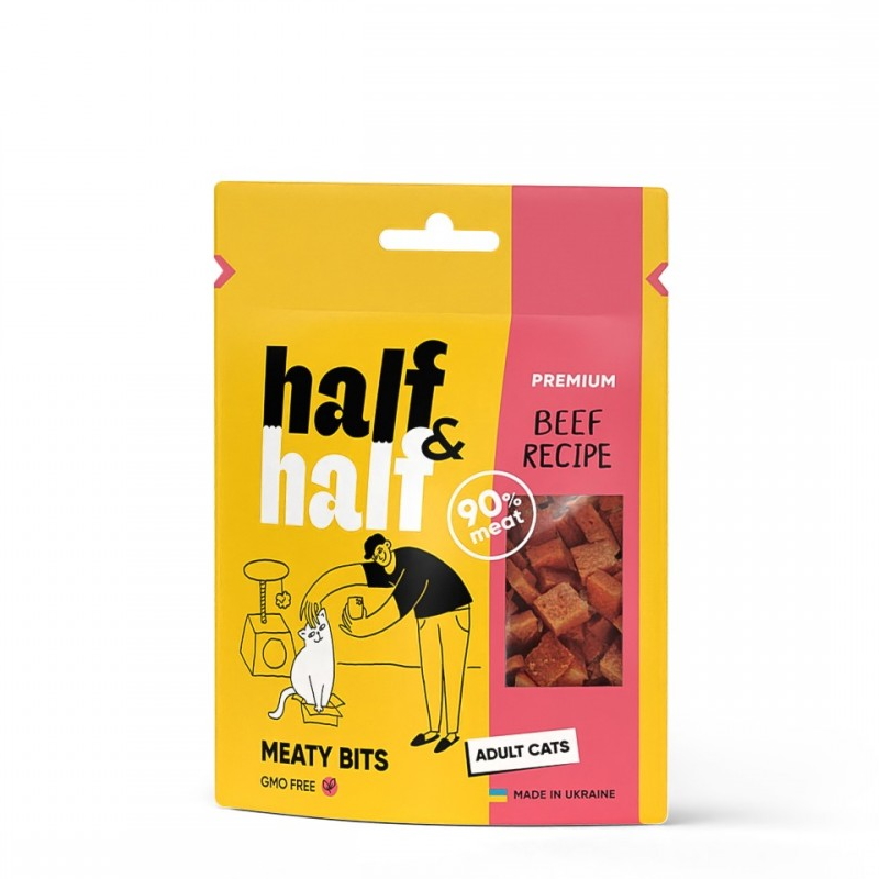 Ласощі для котів Half Half м`ясні шматочки з яловичиною 50г