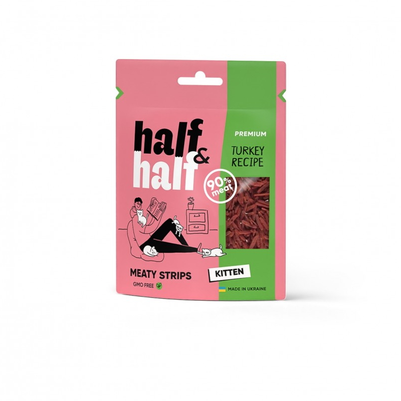 Ласощі для кошенят Half Half м`ясні шматочки з індичкою 50г