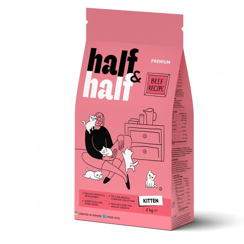 Сухий корм для кошенят Half Half з яловичиною 2кг