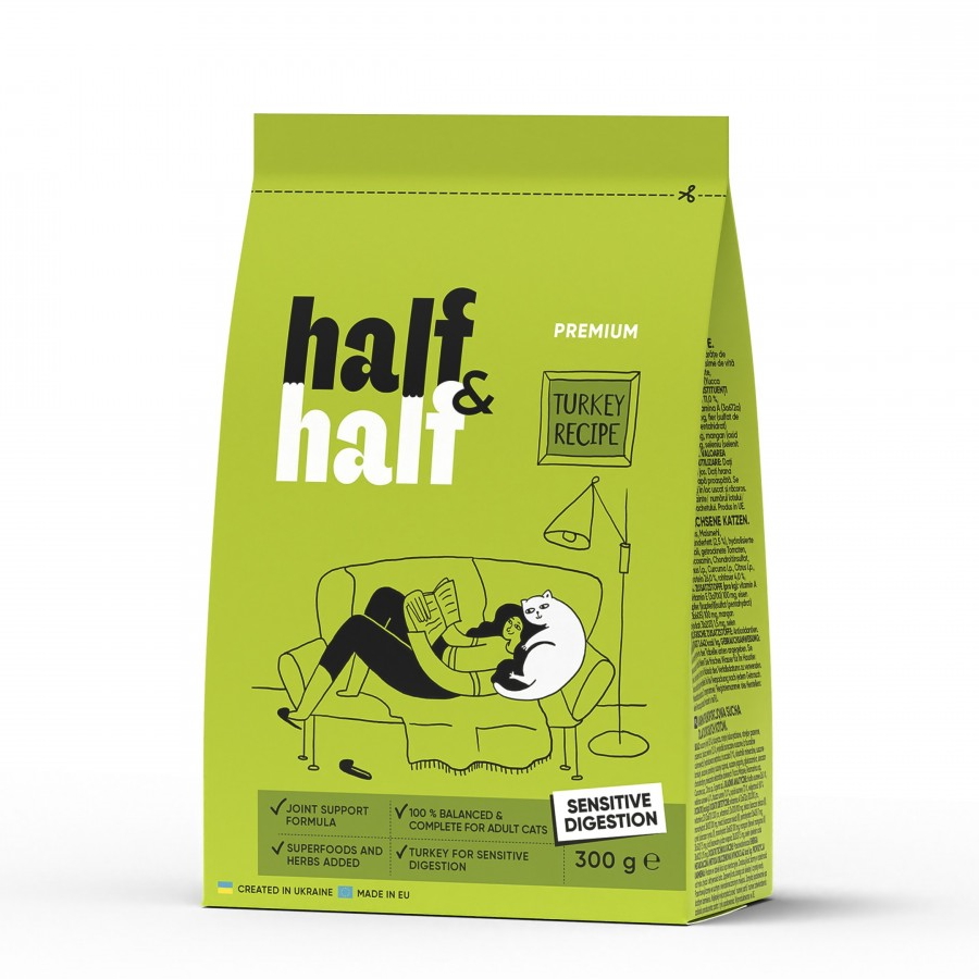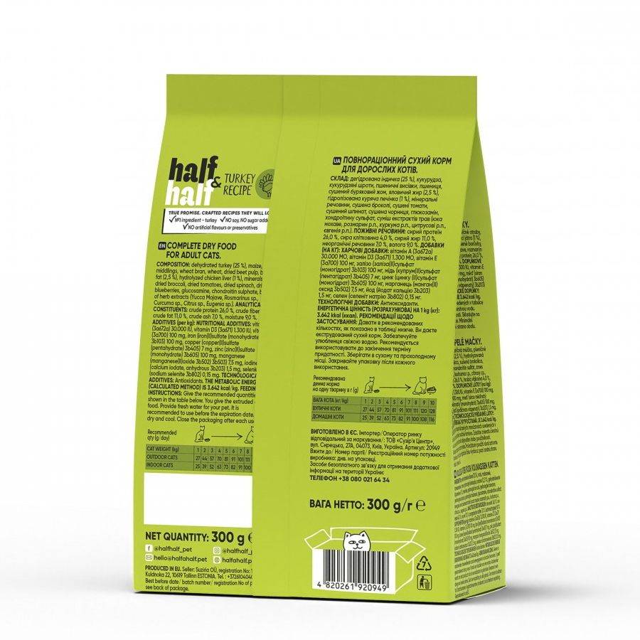 Збагачена фруктами, овочами, хондропротекторами й лікарськими рослинами рецептура Half&Half піклується про оптимальну користь та смак у кожній порції.
