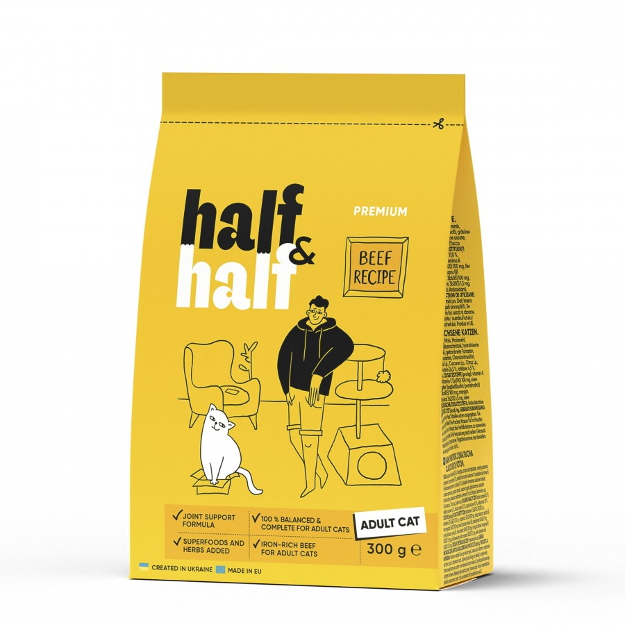 Сухий корм для дорослих котів Half Half з яловичиною 300г