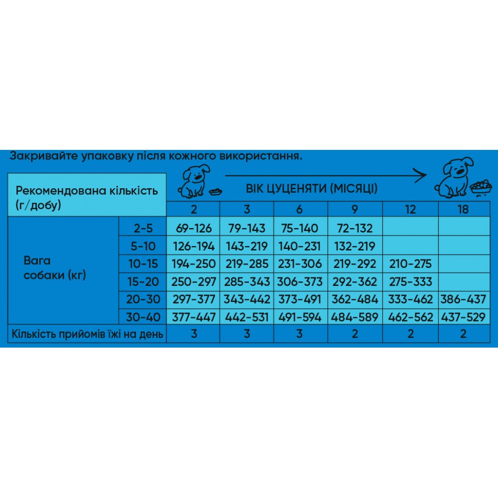 Кількість корму (г/добу) Вік цуценяти (місяці)