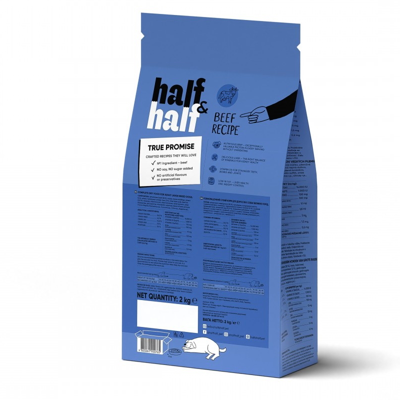 Сухий корм для дорослих собак великих порід Half Half із яловичиною 2кг