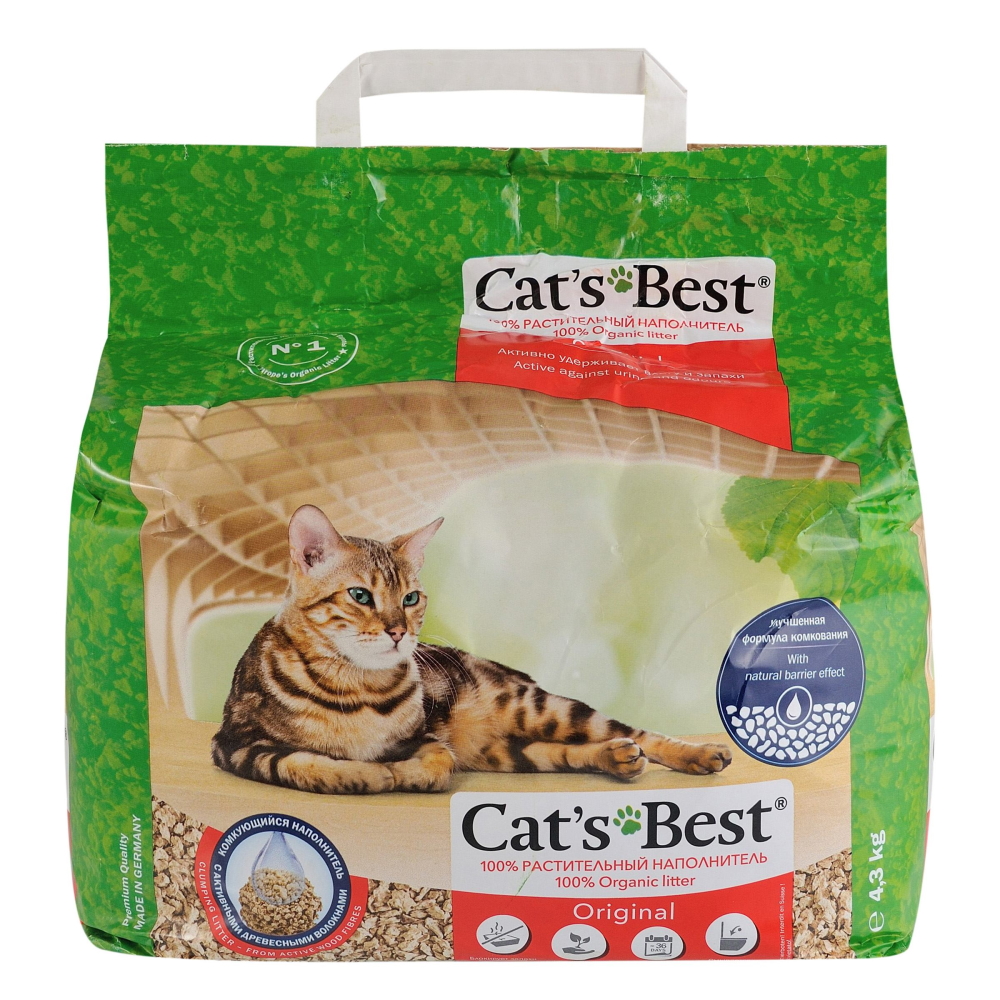 Описание: Унікальність цього продукту у використанні технологічно очищених активних деревних волокон, які поглинають сечу/рідини та запахи. Наповнювач виготовляється за новою технологією ICS Wood Fiber Technology (Інтелектуальна капілярна система). Рідини та запахи поглинаються особливо ефективно та інкапсулюються глибоко всередині – до 7 разів більше їх власної маси. Тому Cat’s Best Original може залишатися в лотку до 5 тижнів, перш ніж знадобиться повна заміна.