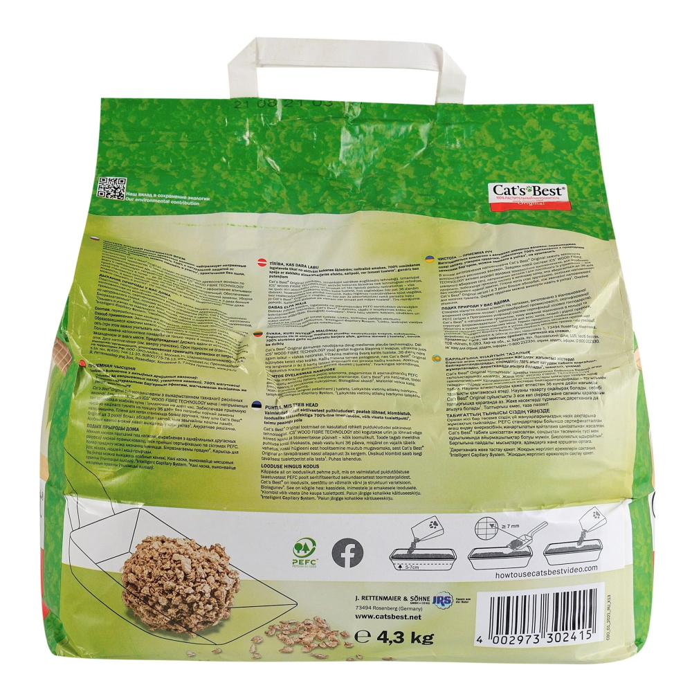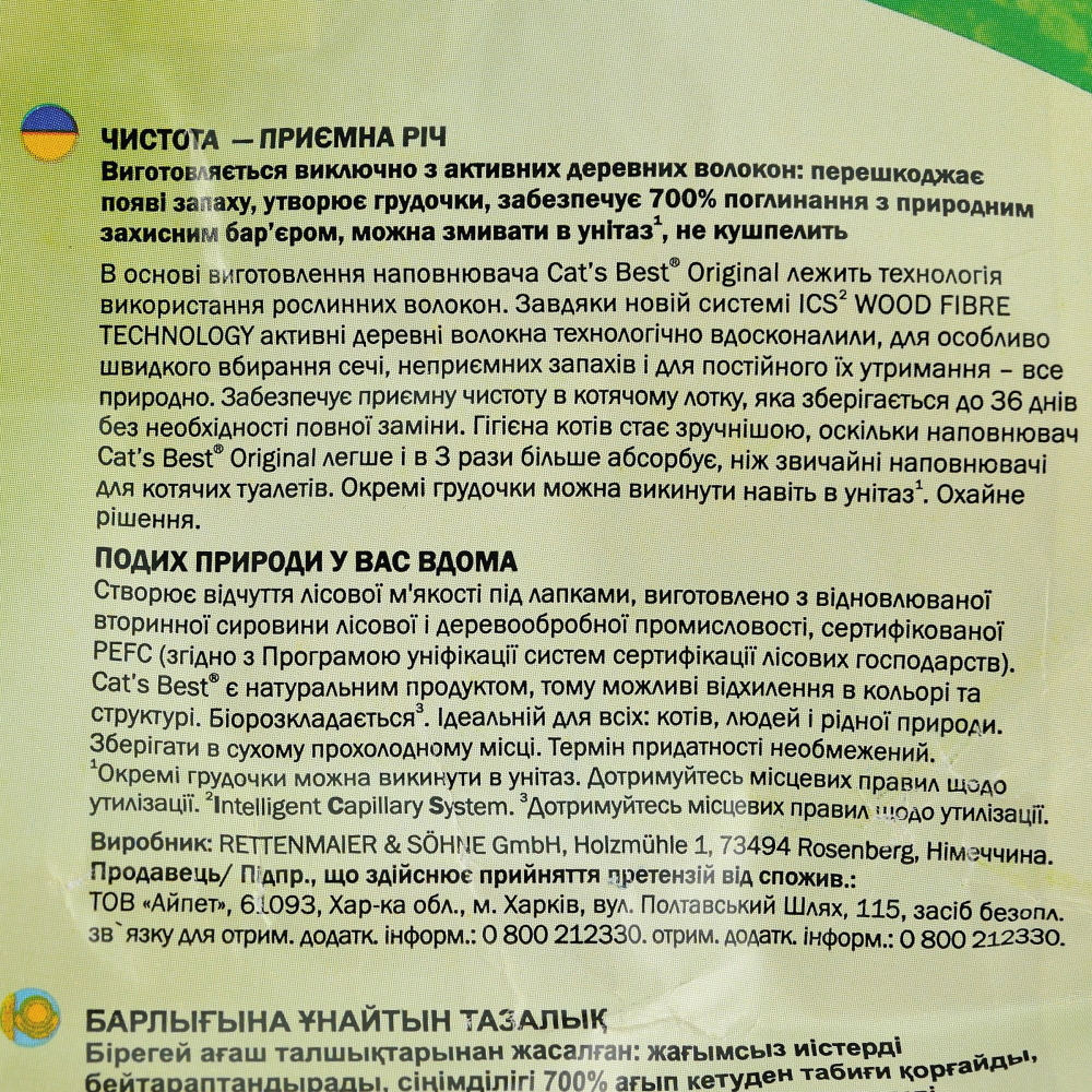 Для Cat’s Best дерева не вирубуються, продукти цього бренду виготовляються з екологічно чистої вторинної деревної сировини лісопромислового виробництва, сертифікованої PEFC.