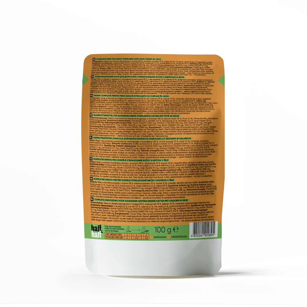 Набор влажных кормов для стерилизованных кошек Half Half 5+1 с индейкой в желе 6штх100г