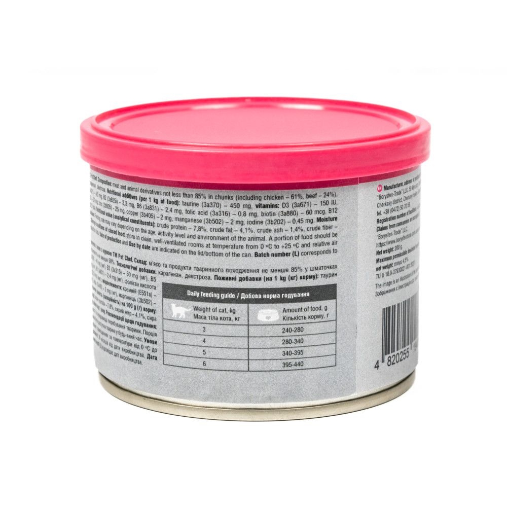 Каталог товаров : Консерви для котів > Вологий корм для котів Pet Chef з куркою в желе 200г