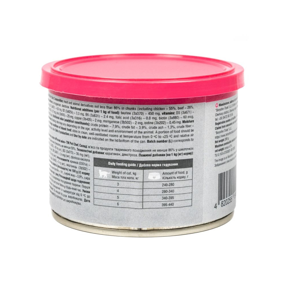 Повнораціонний корм для дорослих котів консервований. Шматочки в желе М'ясний мікс TM Pet Chef 200 г