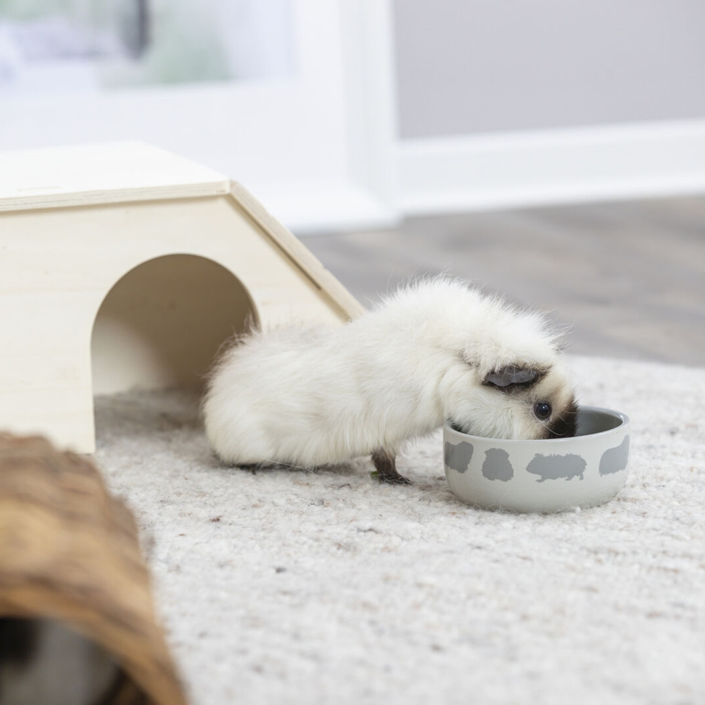 Ця миска Trixie для гризунів має класичний дизайн, цікаві кольори та веселий принт. Виготовлена з безпечного матеріалу, стійка до подряпин. Проста в догляді, можна мити в посудомийній машині.
