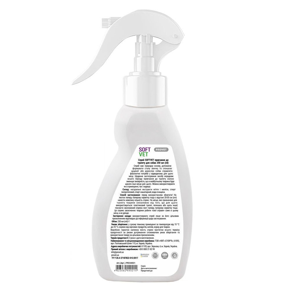 Спрей для привчання до туалету собак Provet SOFTVET 250мл