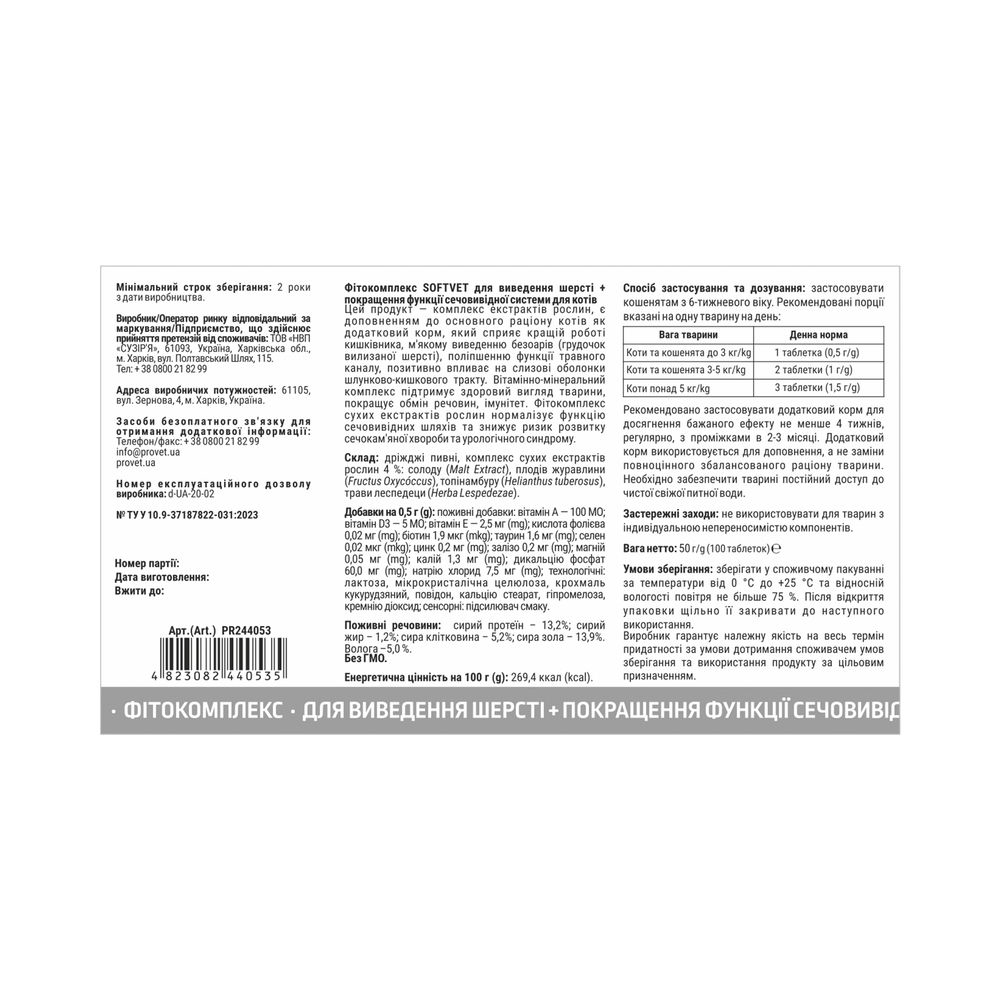 Цей продукт — фітокомплекс екстрактів рослин, є доповненням до основного раціону котів як додатковий корм, який сприяє кращій роботі кишківника, м’якому виведенню безоарів (грудочок вилизаної шерсті), поліпшенню функції травного каналу, позитивно впливає на слизові оболонки шлунково-кишкового тракту.