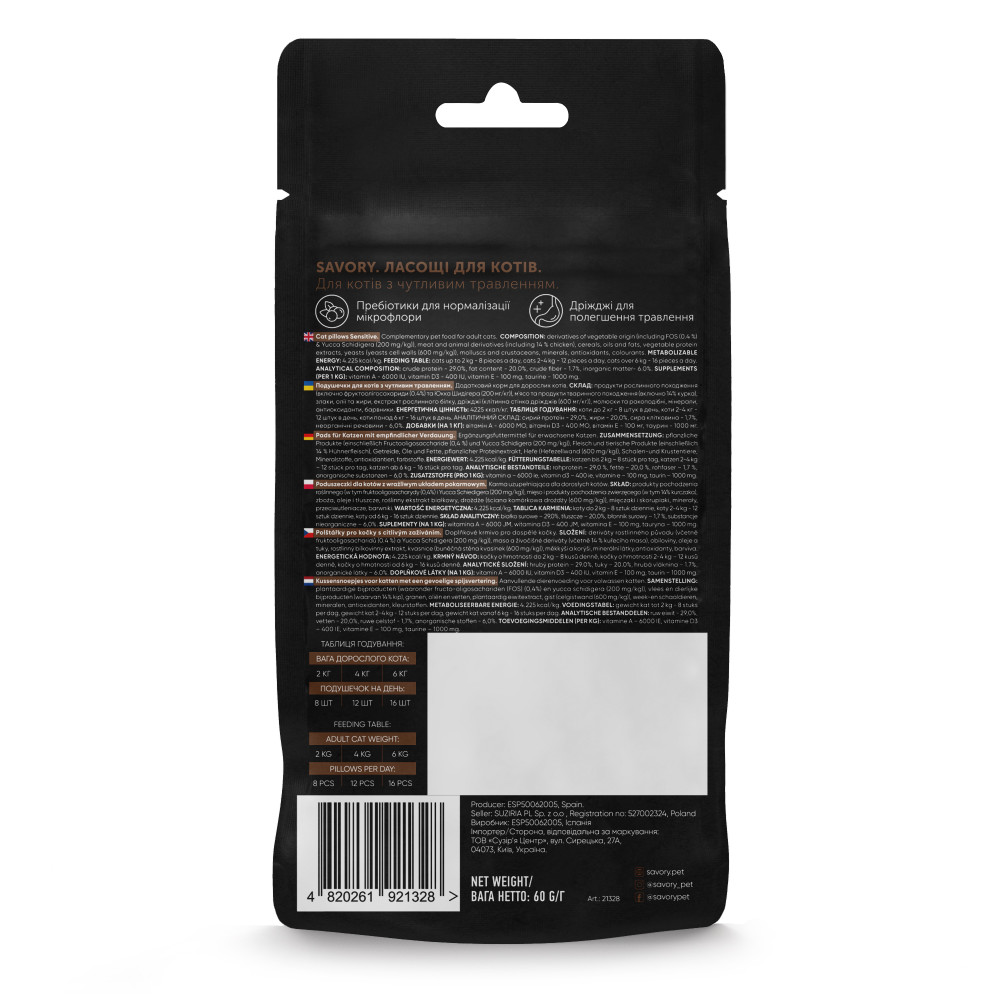 Каталог товаров : Ласощі для котів > Хрумкі ласощі подушечки для котів з чутливим травленням Savory з куркою 60г