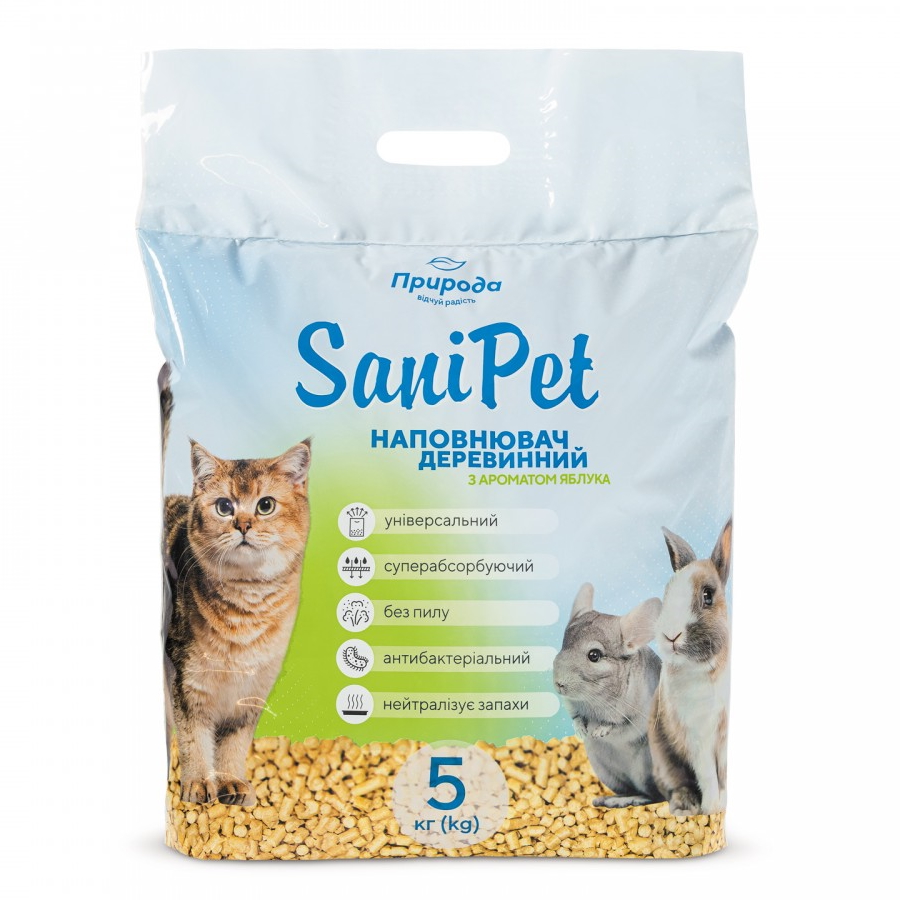 Гігієнічний деревний наповнювач для котів Природа SaniPet Яблуко 5кг