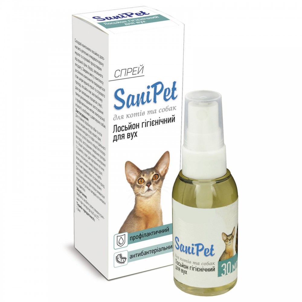 Каталог товаров : Косметика та шампуні для котів > Лосьйон для догляду за вухами котів та собак Provet SANIPET спрей 30мл