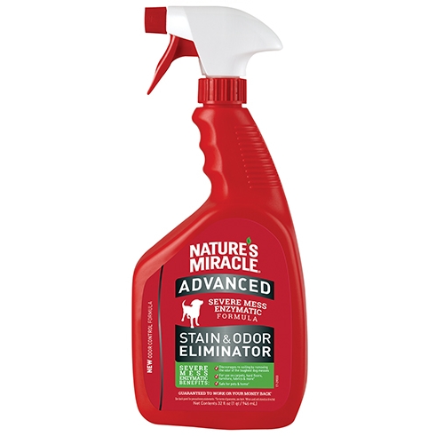 Знищувач плям і запахів з посиленою формулою для собак Nature’s Miracle справляється з найстійкішими забрудненнями, в тому числі і з тими, що в’їдаються та важко вивести.