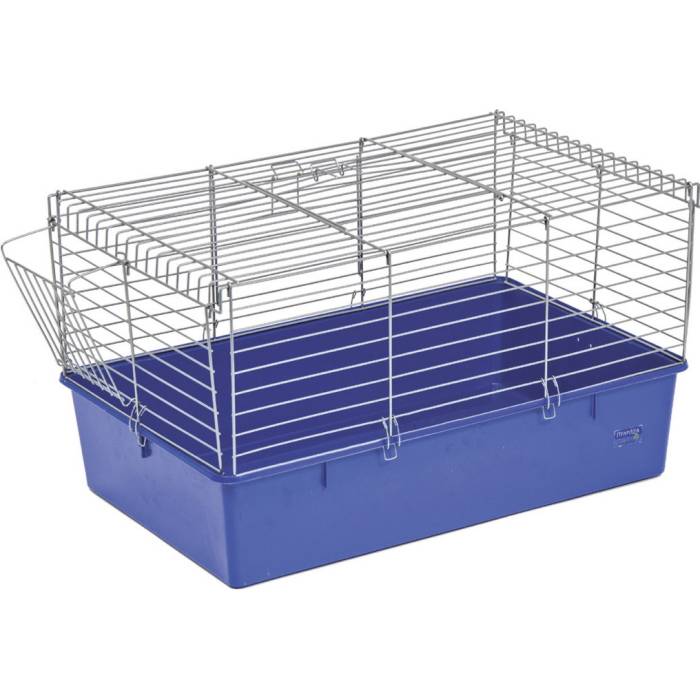 Клетка для декоративных кроликов дает возможность зверьку двигаться, а внешний отсек позволяет держать сено и траву в зоне досягаемости любимца и одновременно не загромождать кормом внутреннее пространство. Прутья изготовлены из стальной проволоки, окрашенной безопасной порошковой краской. Крепления на клетке, соединяющие ее с поддоном, и защелка на дверцах прочные и надежные, зверек не сможет открыть их самостоятельно.