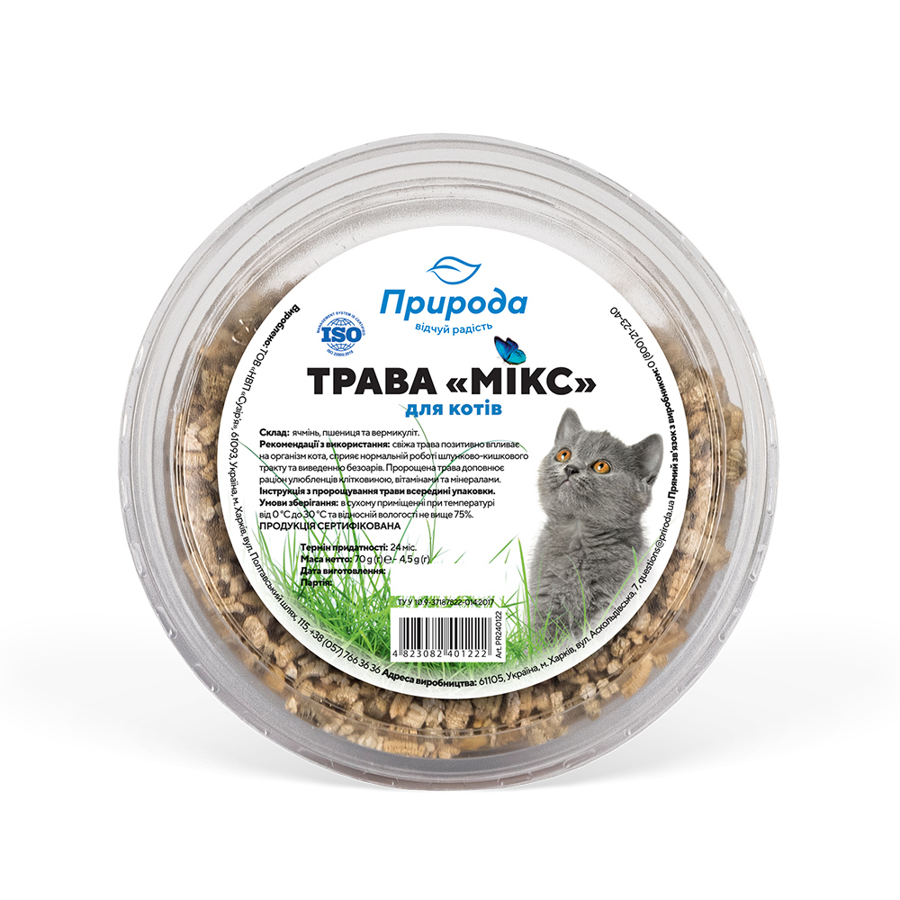 Трава для котів - це суміш добірних зерен, що не піддавалися додатковій обробці.