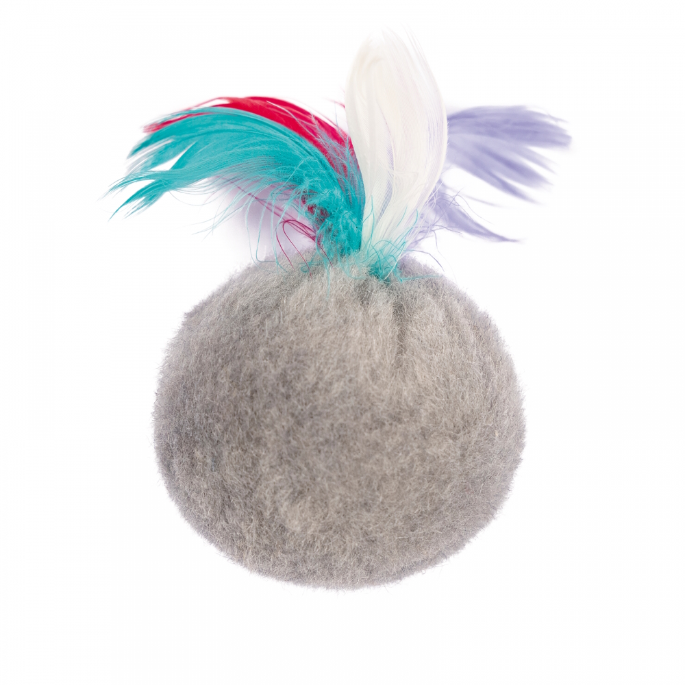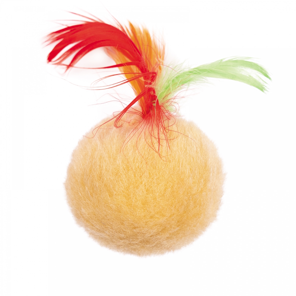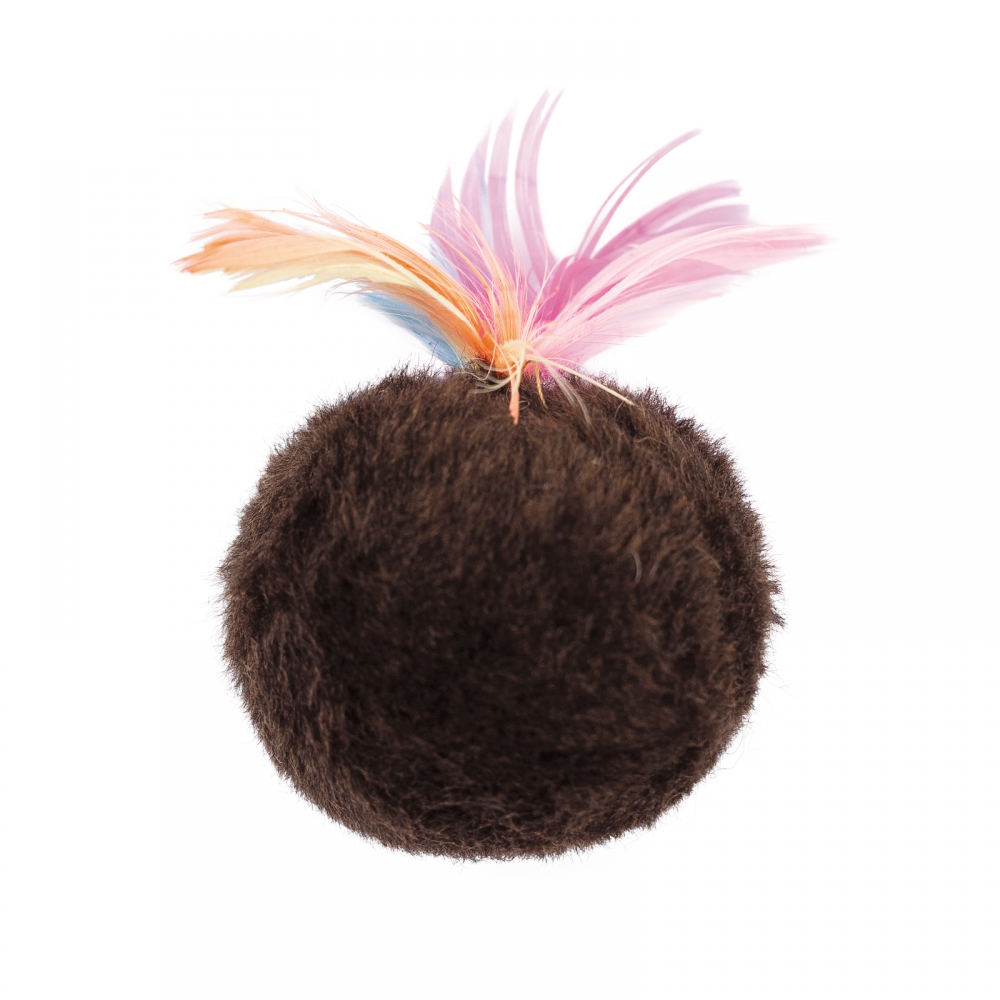 М'який м'ячик виготовлений зі штучного хутра, прикрашений пір'ям і припаде до смаку котам різного віку. Гра з м'ячиком дозволяє тварині: