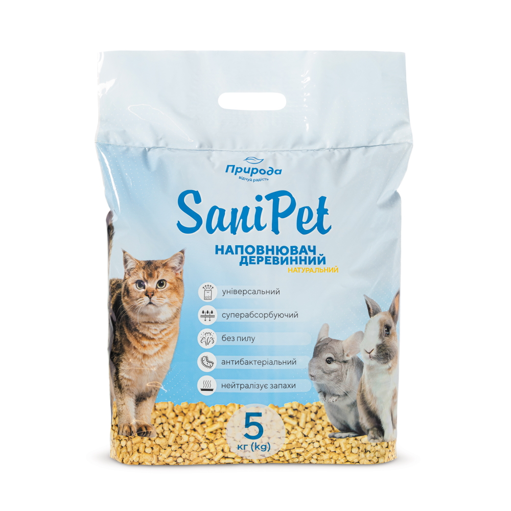 Гігієнічний деревинний наповнювач для котів Природа SaniPet Універсальний 5кг