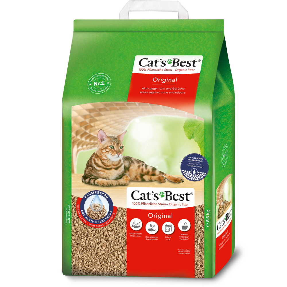 Унікальність цього продукту у використанні технологічно очищених активних деревних волокон, які поглинають сечу/рідини та запахи. Наповнювач виготовляється за новою технологією ICS Wood Fiber Technology (Інтелектуальна капілярна система). Рідини та запахи поглинаються особливо ефективно та інкапсулюються глибоко всередині – до 7 разів більше їх власної маси. Тому Cat’s Best Original може залишатися в лотку до 5 тижнів, перш ніж знадобиться повна заміна.