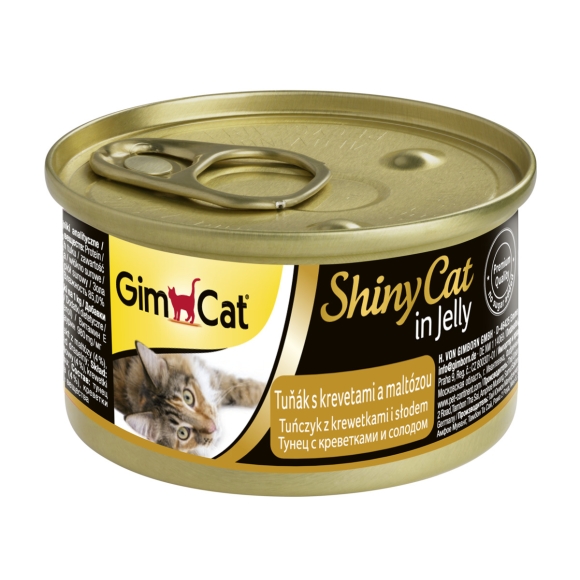 Каталог товаров : Консерви для котів > Вологий корм для котів GimCat Shiny Cat in Jelly з тунцем, креветками та мальтом 70г